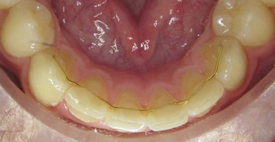 Festsitzende Retainer sind dünne Drähte, die hinter die 6 Frontzähne geklebt werden. Leider gelingt es nicht allen Kieferorthopäden, diese komfortabel und hygienefähig zu gestalten. Gelegentlich können sich einzelne Klebestellen lösen oder es kann zum Bruch eines Retainerdrahts kommen – das sollten die Patienten möglichst rechtzeitg bemerken und in der kieferorthopädischen Praxis reparieren lassen. Der Hygieneaufwand steigt mit festen Retainern geringfügig an. Grundsätzlich sind feste Retainer aber der Goldstandard in der Kieferorthopädie, da sie zuverlässig und komfortabel sind.