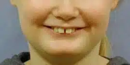 Großer Überbiss mit vorstehenden oberen Schneidezähnen